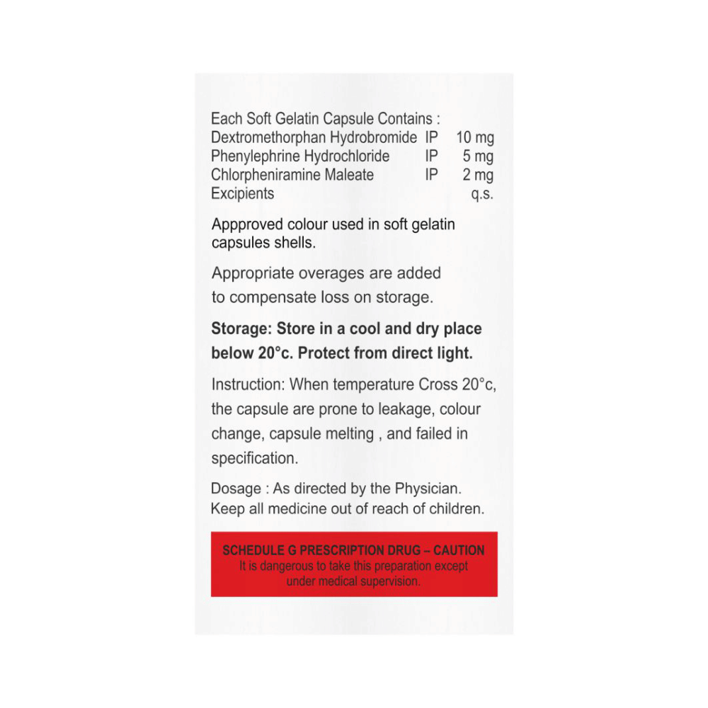 Salt Composition: Phenylephrine (5mg) + Chlorpheniramine Maleate (2mg) + Dextromethorphan Hydrobromide (10mg)