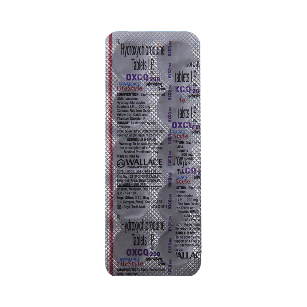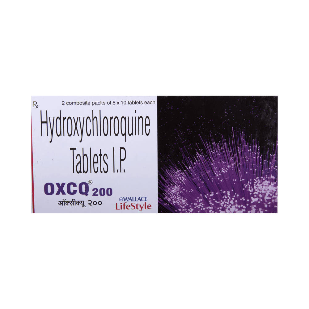 OxcQ 200 Tablet is used to treat autoimmune conditions such as rheumatoid arthritis and systemic lupus erythematosus. It slows the disease's progression and relieves pain, swelling, and redness. It is also used in patients with type 2 diabetes mellitus to improve glycemic control. OxcQ 200 Tablet should be taken with food. This will prevent you from getting an upset stomach upset. You should take it regularly and at the same time each day to get the maximum benefit from it. Keep taking it as recommended by your doctor and complete the dose even if you feel better.The most common side effects of this medicine include nausea, vomiting, diarrhea, and abdominal pain. Consult with your doctor if any of these side effects do not go away with time or get worse. Your doctor may help with ways to reduce or prevent these symptoms.To make sure the medicine is safe for you, before taking this medicine, let your doctor know if you have any problems with your heart, kidneys, or liver. Also, tell your doctor about all the other medicines you are taking. This medicine is contraindicated in the presence of retinal or visual field changes and long-term therapy in children. Your doctor may recommend regular eye tests to check your vision while on this medication. Pregnant and breastfeeding mothers should consult with their doctors before taking the medicine.