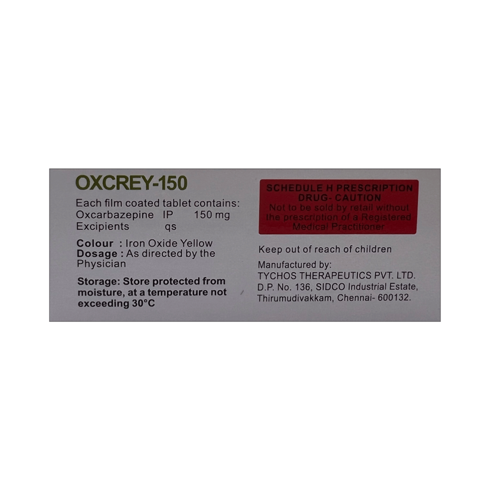 Oxcrey 150 Tablet is used to treat and prevent epilepsy (seizures). However, it cannot cure epilepsy and will only work to prevent seizures for as long as you continue to take the medicine. Oxcrey 150 Tablet may be used alone or in combination with other medicines. The dose and how often you need to take it will be decided by your doctor so that you get the right amount to control your symptoms. It may be increased gradually. You can take this medicine with or without food but take it at the same time each day to get the most benefit. It usually takes a couple of weeks to work. It is important to take this medicine regularly and for as long as you are advised, even if you feel well. Missing doses may trigger seizures and, if you stop, your condition may get worse. It should never be stopped suddenly.The most common side effects of this medicine include nausea, vomiting, feeling dizzy, tired or drowsy, unsteadiness, and low sodium levels in blood. Most of these are not serious. Keep taking the medicine but talk to your doctor if these side effects bother you or do not go away. However, if you notice a skin rash or redness, tell your doctor straight away. It could develop into a life-threatening skin condition called Stevens-Johnson syndrome. Long-term treatment with this medicine can cause osteoporosis (reduced bone mass) and increase your risk of breaking a bone. Anticonvulsants like this medicine may cause suicidal thoughts and behaviors. If your mood becomes depressed, tell your doctor.This medicine may not be suitable for everybody. Before using it, tell your doctor if you have ever had heart problems, kidney or liver disease, difficulty urinating, depression, or suicidal thoughts. Many other medicines can interfere with it and some should not be taken together so tell your doctor all the medicines you are taking to make sure it is safe. If you are pregnant, do not start or stop taking this medicine without asking your doctor. Drinking alcohol should be avoided as it can increase some of the side effects and can also increase your risk of seizures. You may need frequent blood tests to help your doctor make sure you are taking the right dose both before you start and while you are using it.
