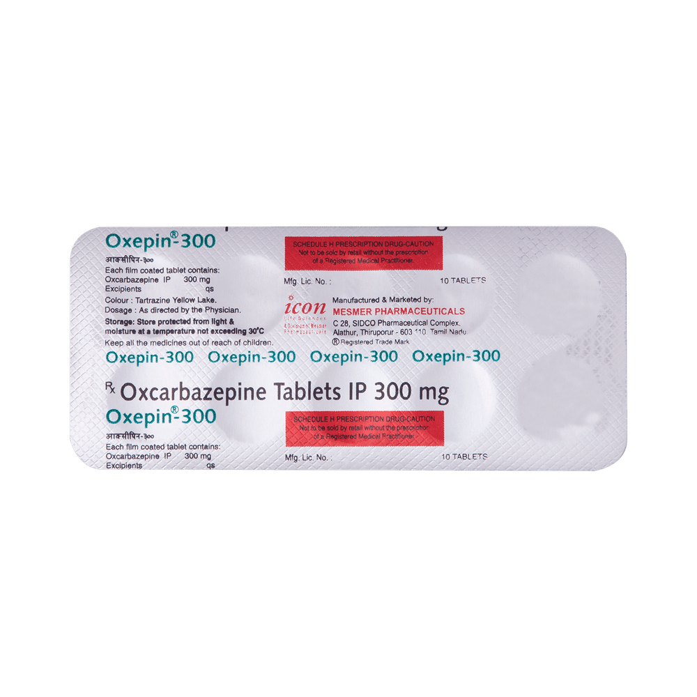 Oxepin 300mg Tablet is used to treat and prevent epilepsy (seizures). However, it cannot cure epilepsy and will only work to prevent seizures for as long as you continue to take the medicine. Oxepin 300mg Tablet may be used alone or in combination with other medicines. The dose and how often you need to take it will be decided by your doctor so that you get the right amount to control your symptoms. It may be increased gradually. You can take this medicine with or without food but take it at the same time each day to get the most benefit. It usually takes a couple of weeks to work. It is important to take this medicine regularly and for as long as you are advised, even if you feel well. Missing doses may trigger seizures and, if you stop, your condition may get worse. It should never be stopped suddenly.The most common side effects of this medicine include nausea, vomiting, feeling dizzy, tired or drowsy, unsteadiness, and low sodium levels in blood. Most of these are not serious. Keep taking the medicine but talk to your doctor if these side effects bother you or do not go away. However, if you notice a skin rash or redness, tell your doctor straight away. It could develop into a life-threatening skin condition called Stevens-Johnson syndrome. Long-term treatment with this medicine can cause osteoporosis (reduced bone mass) and increase your risk of breaking a bone. Anticonvulsants like this medicine may cause suicidal thoughts and behaviors. If your mood becomes depressed, tell your doctor.This medicine may not be suitable for everybody. Before using it, tell your doctor if you have ever had heart problems, kidney or liver disease, difficulty urinating, depression, or suicidal thoughts. Many other medicines can interfere with it and some should not be taken together so tell your doctor all the medicines you are taking to make sure it is safe. If you are pregnant, do not start or stop taking this medicine without asking your doctor. Drinking alcohol should be avoided as it can increase some of the side effects and can also increase your risk of seizures. You may need frequent blood tests to help your doctor make sure you are taking the right dose both before you start and while you are using it.