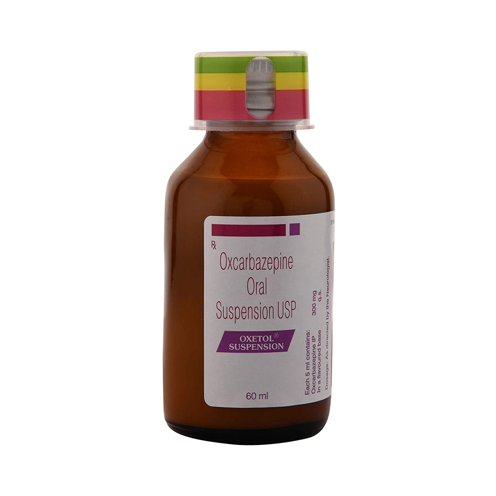 Oxetol Suspension is used to treat and prevent epilepsy (seizures). However, it cannot cure epilepsy and will only work to prevent seizures for as long as you continue to take the medicine. Oxetol Suspension may be used alone or in combination with other medicines. The dose and how often you need to take it will be decided by your doctor so that you get the right amount to control your symptoms. It may be increased gradually. You can take this medicine with or without food but take it at the same time each day to get the most benefit. It usually takes a couple of weeks to work. It is important to take this medicine regularly and for as long as you are advised, even if you feel well. Missing doses may trigger seizures and, if you stop, your condition may get worse. It should never be stopped suddenly.The most common side effects of this medicine include nausea, vomiting, feeling dizzy, tired or drowsy, unsteadiness, and low sodium levels in blood. Most of these are not serious. Keep taking the medicine but talk to your doctor if these side effects bother you or do not go away. However, if you notice a skin rash or redness, tell your doctor straight away. It could develop into a life-threatening skin condition called Stevens-Johnson syndrome. Long-term treatment with this medicine can cause osteoporosis (reduced bone mass) and increase your risk of breaking a bone. Anticonvulsants like this medicine may cause suicidal thoughts and behaviors. If your mood becomes depressed, tell your doctor.This medicine may not be suitable for everybody. Before using it, tell your doctor if you have ever had heart problems, kidney or liver disease, difficulty urinating, depression, or suicidal thoughts. Many other medicines can interfere with it and some should not be taken together so tell your doctor all the medicines you are taking to make sure it is safe. If you are pregnant, do not start or stop taking this medicine without asking your doctor. Drinking alcohol should be avoided as it can increase some of the side effects and can also increase your risk of seizures. You may need frequent blood tests to help your doctor make sure you are taking the right dose both before you start and while you are using it.