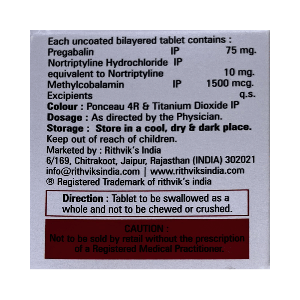 Salt Composition: Pregabalin (75mg) + Nortriptyline (10mg) + Methylcobalamin (1500mcg)