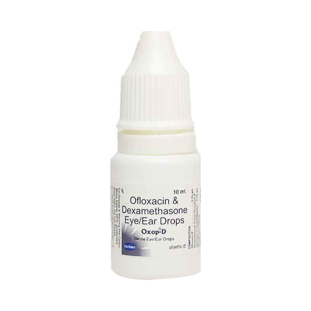 Oxop D Eye Drop is a prescription medicine used in the treatment of bacterial infections of the eye. It stops the growth of bacteria and helps in relieving redness, itching, and swelling. This way it treats the infection relieves your symptoms. Oxop D Eye Drop is to be used only in the affected eye in the dose and duration as advised by the doctor. Wash your hands before using this medicine. It is advised to check the label for directions before use. Do not skip any doses and finish the full course of treatment even if you feel better. Stopping the medicine too early may lead to the infection returning or worsening.The most common side effects include discomfort and irritation at the application site. If these side effects persist for a longer duration, inform your doctor. In case by accident, this medicine goes into your ears, nose, or mouth, immediately rinse it off with water. Inform your doctor if you are allergic to any of the ingredients of this medicine or taking any other medication. It is advised not to drive or operate heavy machinery after using this medicine as it may cause temporary blurring of vision.