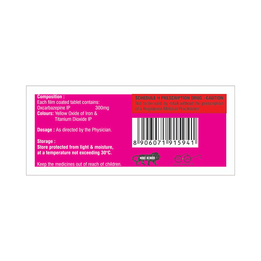 Oxycbaz 300 Tablet is used to treat and prevent epilepsy (seizures). However, it cannot cure epilepsy and will only work to prevent seizures for as long as you continue to take the medicine. Oxycbaz 300 Tablet may be used alone or in combination with other medicines. The dose and how often you need to take it will be decided by your doctor so that you get the right amount to control your symptoms. It may be increased gradually. You can take this medicine with or without food but take it at the same time each day to get the most benefit. It usually takes a couple of weeks to work. It is important to take this medicine regularly and for as long as you are advised, even if you feel well. Missing doses may trigger seizures and, if you stop, your condition may get worse. It should never be stopped suddenly.The most common side effects of this medicine include nausea, vomiting, feeling dizzy, tired or drowsy, unsteadiness, and low sodium levels in blood. Most of these are not serious. Keep taking the medicine but talk to your doctor if these side effects bother you or do not go away. However, if you notice a skin rash or redness, tell your doctor straight away. It could develop into a life-threatening skin condition called Stevens-Johnson syndrome. Long-term treatment with this medicine can cause osteoporosis (reduced bone mass) and increase your risk of breaking a bone. Anticonvulsants like this medicine may cause suicidal thoughts and behaviors. If your mood becomes depressed, tell your doctor.This medicine may not be suitable for everybody. Before using it, tell your doctor if you have ever had heart problems, kidney or liver disease, difficulty urinating, depression, or suicidal thoughts. Many other medicines can interfere with it and some should not be taken together so tell your doctor all the medicines you are taking to make sure it is safe. If you are pregnant, do not start or stop taking this medicine without asking your doctor. Drinking alcohol should be avoided as it can increase some of the side effects and can also increase your risk of seizures. You may need frequent blood tests to help your doctor make sure you are taking the right dose both before you start and while you are using it.