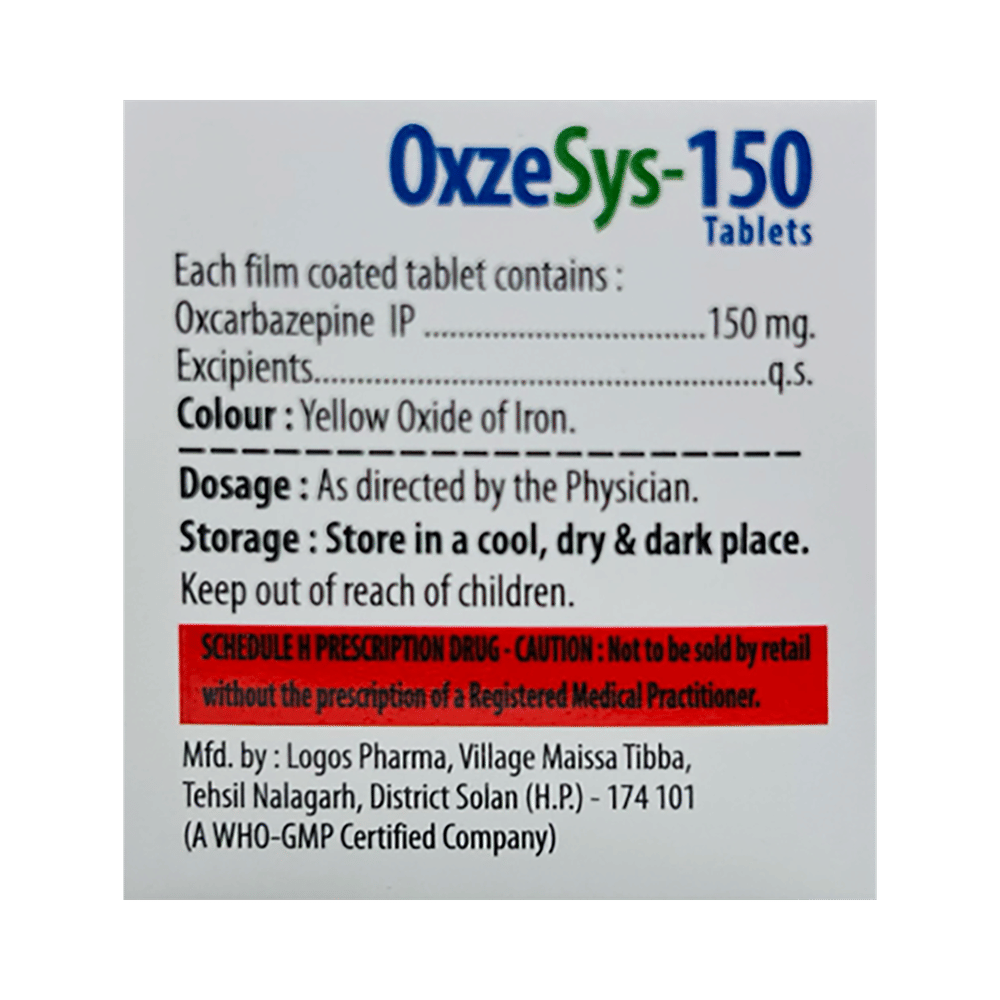 Oxzesys 150 Tablet is used to treat and prevent epilepsy (seizures). However, it cannot cure epilepsy and will only work to prevent seizures for as long as you continue to take the medicine. Oxzesys 150 Tablet may be used alone or in combination with other medicines. The dose and how often you need to take it will be decided by your doctor so that you get the right amount to control your symptoms. It may be increased gradually. You can take this medicine with or without food but take it at the same time each day to get the most benefit. It usually takes a couple of weeks to work. It is important to take this medicine regularly and for as long as you are advised, even if you feel well. Missing doses may trigger seizures and, if you stop, your condition may get worse. It should never be stopped suddenly.The most common side effects of this medicine include nausea, vomiting, feeling dizzy, tired or drowsy, unsteadiness, and low sodium levels in blood. Most of these are not serious. Keep taking the medicine but talk to your doctor if these side effects bother you or do not go away. However, if you notice a skin rash or redness, tell your doctor straight away. It could develop into a life-threatening skin condition called Stevens-Johnson syndrome. Long-term treatment with this medicine can cause osteoporosis (reduced bone mass) and increase your risk of breaking a bone. Anticonvulsants like this medicine may cause suicidal thoughts and behaviors. If your mood becomes depressed, tell your doctor.This medicine may not be suitable for everybody. Before using it, tell your doctor if you have ever had heart problems, kidney or liver disease, difficulty urinating, depression, or suicidal thoughts. Many other medicines can interfere with it and some should not be taken together so tell your doctor all the medicines you are taking to make sure it is safe. If you are pregnant, do not start or stop taking this medicine without asking your doctor. Drinking alcohol should be avoided as it can increase some of the side effects and can also increase your risk of seizures. You may need frequent blood tests to help your doctor make sure you are taking the right dose both before you start and while you are using it.