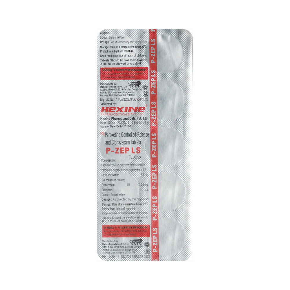P-ZEP LS Tablet CR is a combination of two medicines, paroxetine and clonazepam, which have mood-enhancing and anxiety-lowering effects. Paroxetine is a selective serotonin reuptake inhibitor (SSRI), which increases the levels of serotonin, a chemical messenger that improves mood. Clonazepam is a benzodiazepine (BZD) that increases the action of GABA, a chemical messenger that suppresses the abnormal activity of the nerve cells in the brain.