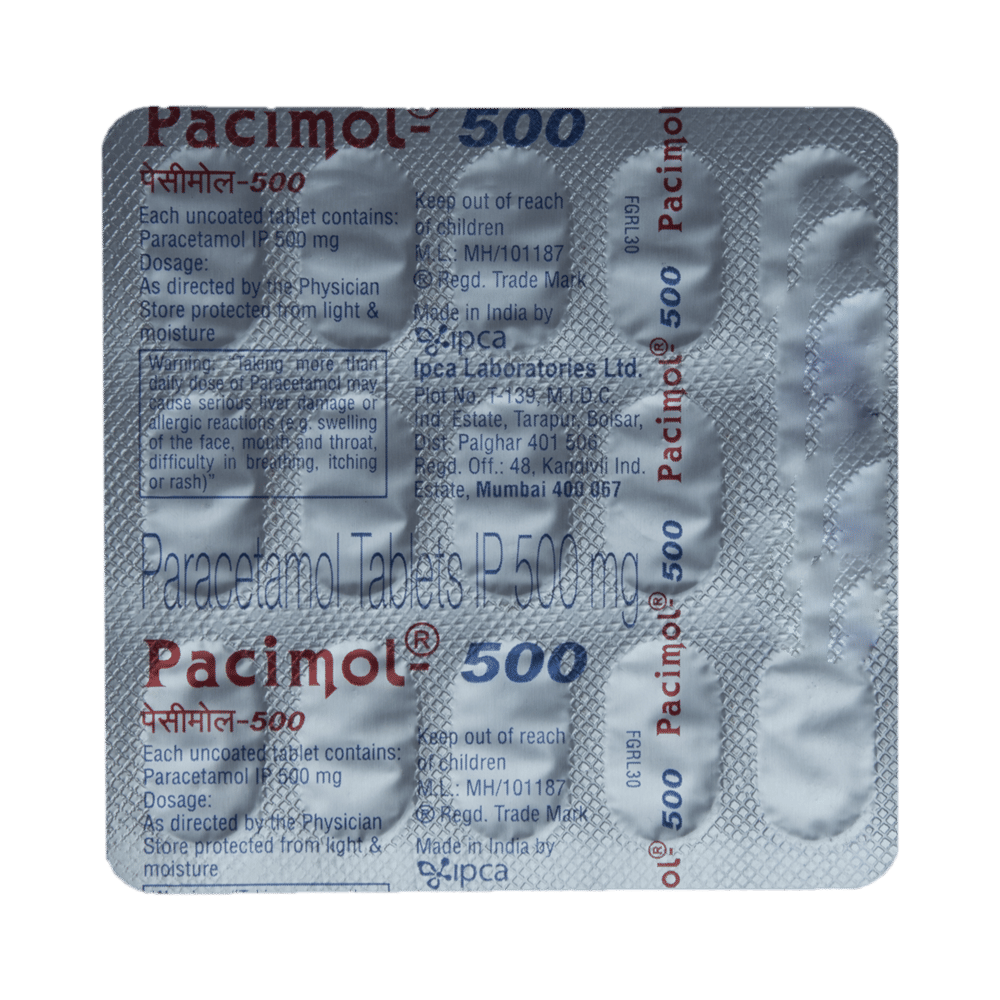 In Pain reliefPacimol 650 Tablet is a common painkiller for treating aches and pains. It is widely used and rarely causes any side effects if taken properly. To get the most benefits, take it as prescribed. Do not take more or for longer than needed as that can be dangerous.In Treatment of FeverPacimol 650 Tablet is also used to reduce a high temperature (fever). It works by blocking the release of certain chemical messengers that cause fever. It may be prescribed alone or in combination with other medicines. Take it as prescribed by the doctor.show moreshow less
