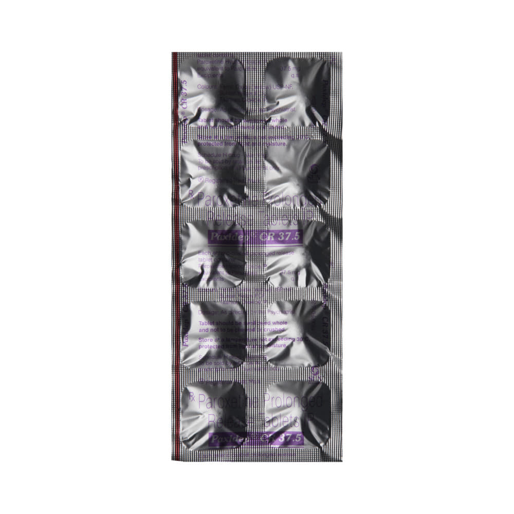 Paxidep CR 37.5 Tablet is a type of antidepressant belonging to the selective serotonin reuptake inhibitor (SSRI) group of medicines. It is widely prescribed to treat depression and anxiety-related conditions like obsessive-compulsive disorder, and panic disorder. Paxidep CR 37.5 Tablet helps many people to recover from depression by improving their mood and relieving anxiety and tension. It can be taken with or without food. The dose and how often you need it will be decided by your doctor so that you get the right amount to control your symptoms.Your doctor may start you on a lower dose and increase it gradually. Do not change the dose or stop taking it without talking to your doctor, even if you feel well. Doing so may make your condition worse or you may suffer from unpleasant withdrawal symptoms (anxiety, restlessness, palpitations, dizziness, sleep disturbances, etc).To get the most benefit, take this medicine regularly at the same time each day. Your doctor may advise you to take it in the morning if you have trouble sleeping. It may take a few weeks before you start feeling better. Let your doctor know if you do not see any improvement even after 4 weeks.Some common side effects of Paxidep CR 37.5 Tablet include nausea, fatigue, dry mouth, loss of appetite, increased sweating, dizziness, nervousness, tremors, insomnia (difficulty in sleeping), and constipation. Sexual side effects like decreased sexual drive, delayed ejaculation, and erectile dysfunction may also be seen. Let your doctor know straight away if you develop any sudden worsening of mood or any thoughts about harming yourself.Before taking this medicine, you should tell your doctor if you have epilepsy (seizure disorder or fits), diabetes, liver or kidney disease, heart problems, or glaucoma. These may affect your treatment. Pregnant or breastfeeding women should also consult their doctor before taking it. Some other medicines may affect the way it works, especially other antidepressants and medicines called MAO inhibitors. Please tell your doctor about all the medicines you are taking to make sure you are safe.