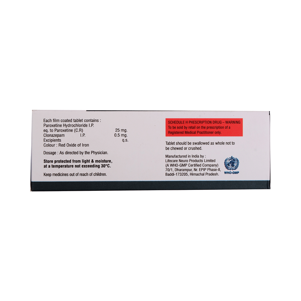Salt Composition: Paroxetine (25mg) + Clonazepam (0.5mg)