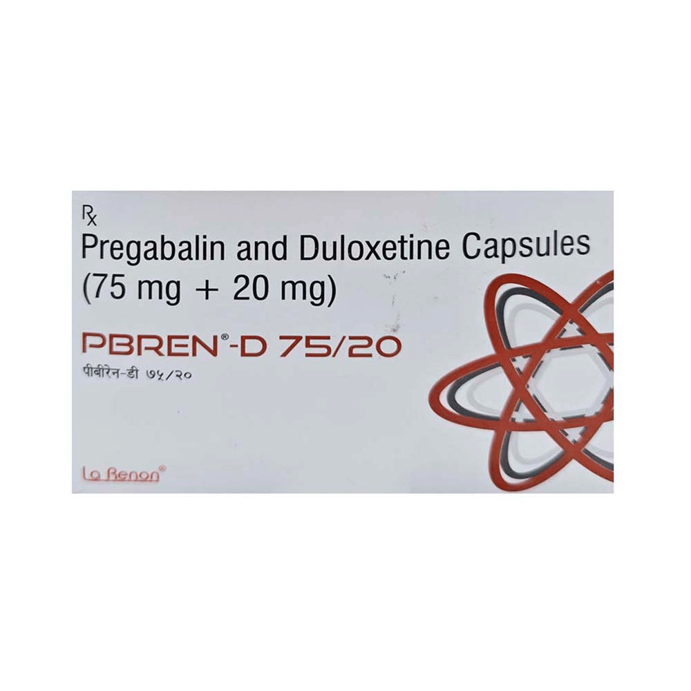 Pbren D 75mg/20mg Capsule is a combination of two medicines: pregabalin and duloxetine. Pregabalin decreases neurotransmitter release, while duloxetine boosts serotonin and norepinephrine levels to modulate pain perception, working together to relieve nerve pain.