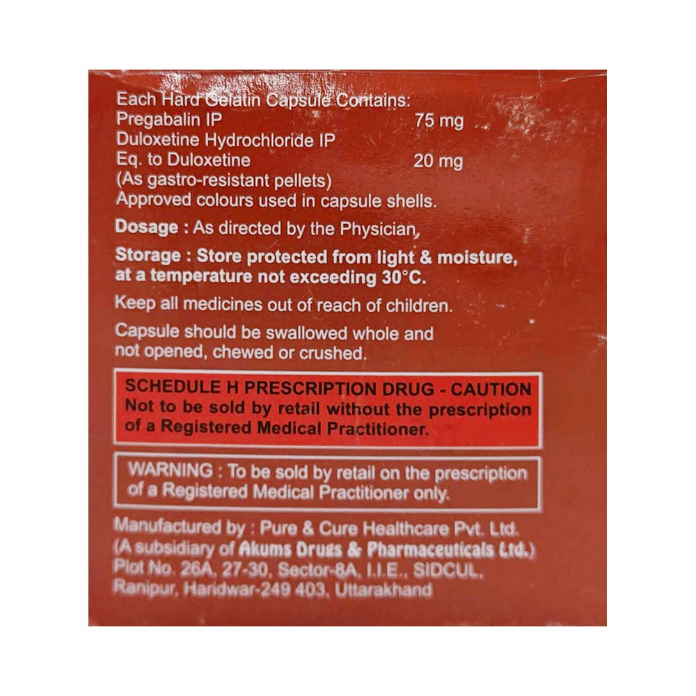 Salt Composition: Pregabalin (75mg) + Duloxetine (20mg)