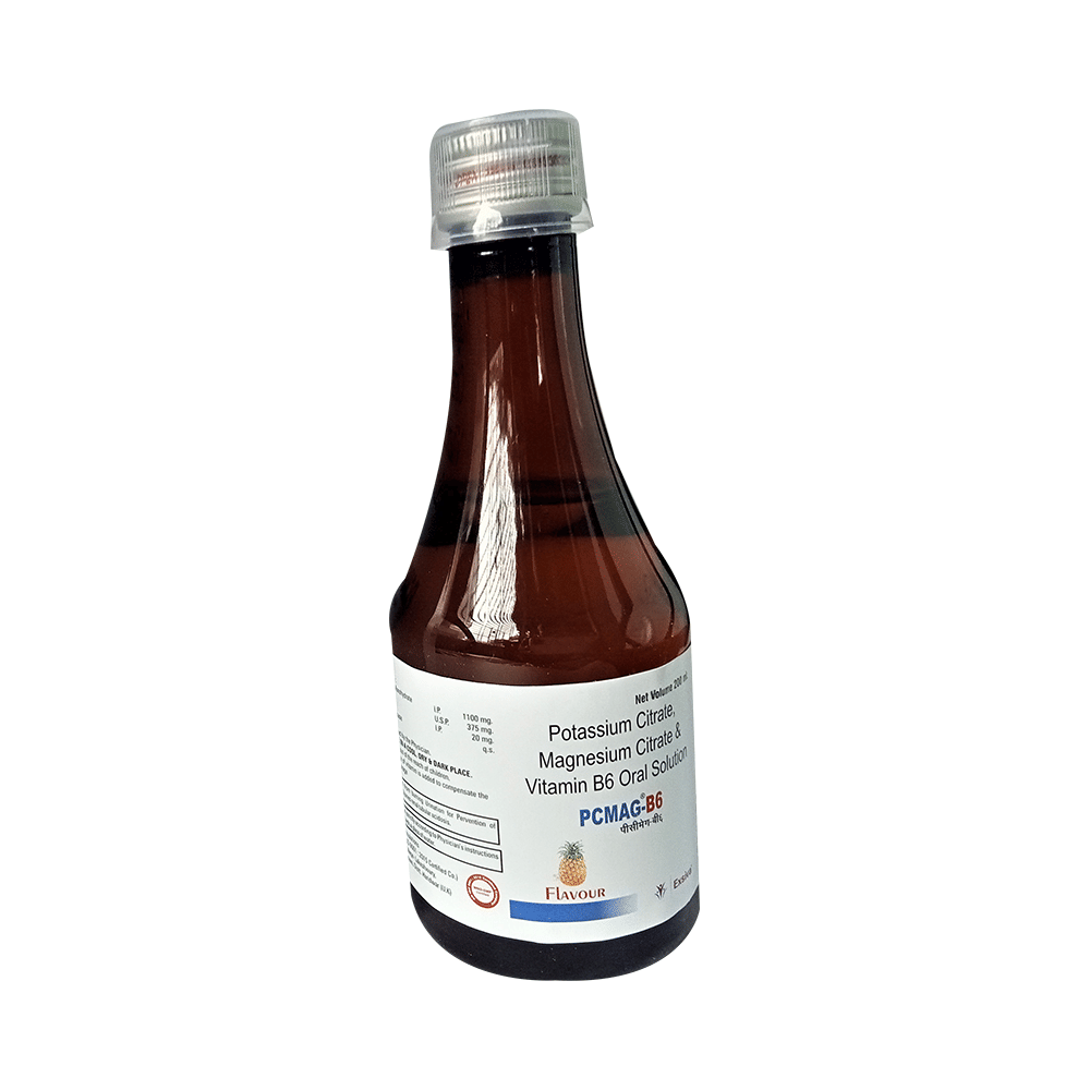 Pcmag-B6 Oral Solution Pineapple is a combination of three medicines. It is used in the treatment and prevention of kidney stones. It works by preventing the formation as well as breaking down the crystals in the kidneys. Pcmag-B6 Oral Solution Pineapple may be prescribed alone or in combination with other medicines. It should be taken with food. Measure the solution and dilute it in a glass of water before taking it. Take it regularly and do not take more or use it for a longer duration than recommended by your doctor. You should not stop taking the medicine until your doctor tells you it is okay to stop.Using this medicine may cause a few common side effects such as diarrhea, nausea, vomiting, dizziness, and stomach pain. If you experienced any such side effect that does not resolve with time or get worse, you should let your doctor know. Your doctor may be able to suggest ways of preventing or reducing them.The medicine may not be suitable for everybody. Before taking it, let your doctor know if you have any medical conditions or disorders such as problems with your heart, liver, or kidneys. Let your doctor also know all the other medicines you are taking to make sure the medicine is safe for you. Pregnant and breastfeeding women should consult their doctors before using this medicine.