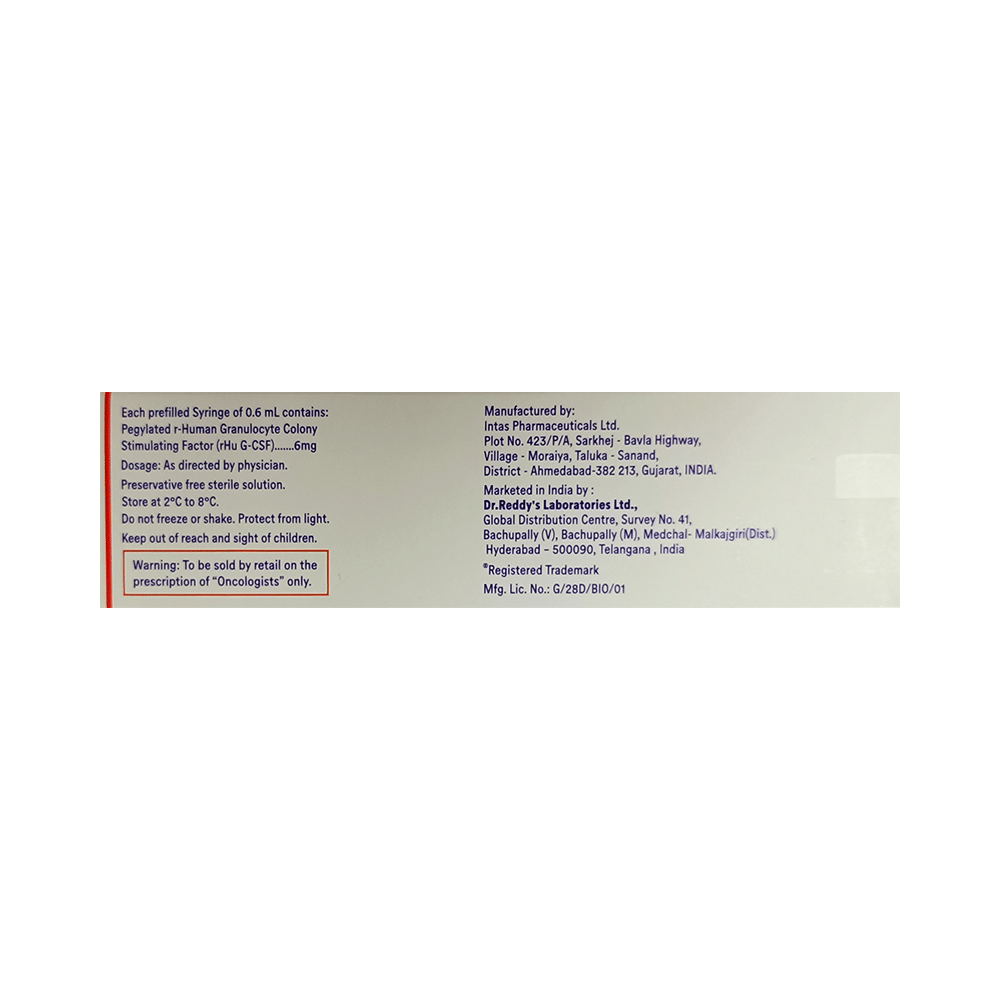Pegfeel Injection is used to prevent infections after chemotherapy. It is a growth factor that stimulates the bone marrow to produce white blood cells. These cells protect the body against infections. Pegfeel Injection is given as an injection by a qualified medical professional. You should continue to take as long as your doctor advises for it. The duration of treatment varies according to your need and response to treatment. You might be asked to get regular tests done to check the number of blood cells in your blood and your bone density level while you are taking this medicine.The most common side effects of this medicine include bone pain, weakness, joint pain, headache, and rash. Other than this, pain or redness at the site of injection is common. But, inform your doctor if you notice a lump, swelling, or bruising that does not go away. It might not prevent you from all kinds of infection, hence inform your doctor if you notice fever, chills, rash, sore throat, and swelling around the face or neck.Many other medicines can affect, or be affected by, this medicine so let your healthcare team know all medications you are using. This medicine is not recommended during pregnancy or while breastfeeding. The use of effective contraception by both males and females during treatment is important to avoid pregnancy.