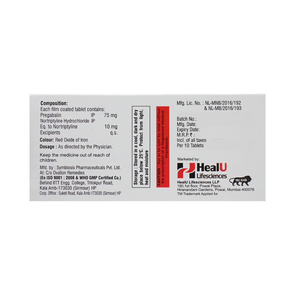 Salt Composition: Pregabalin (75mg) + Nortriptyline (10mg)