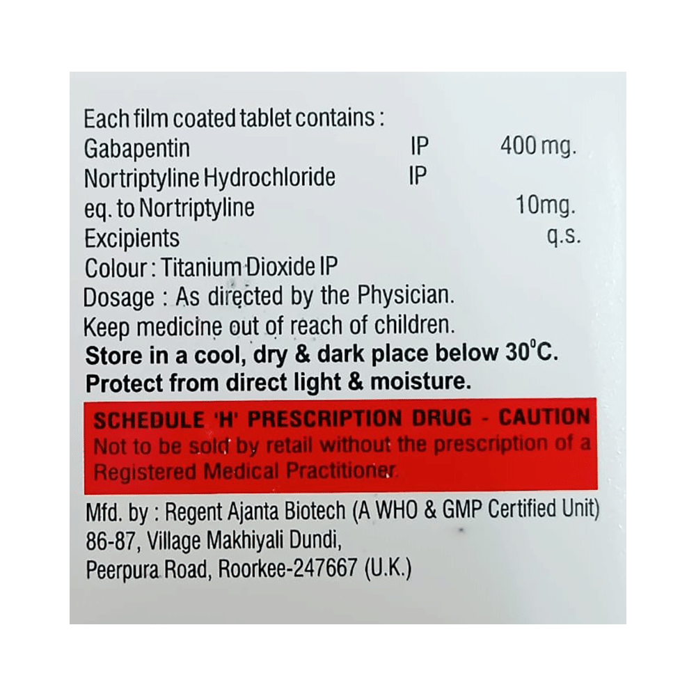 Salt Composition: Gabapentin (400mg) + Nortriptyline (10mg)