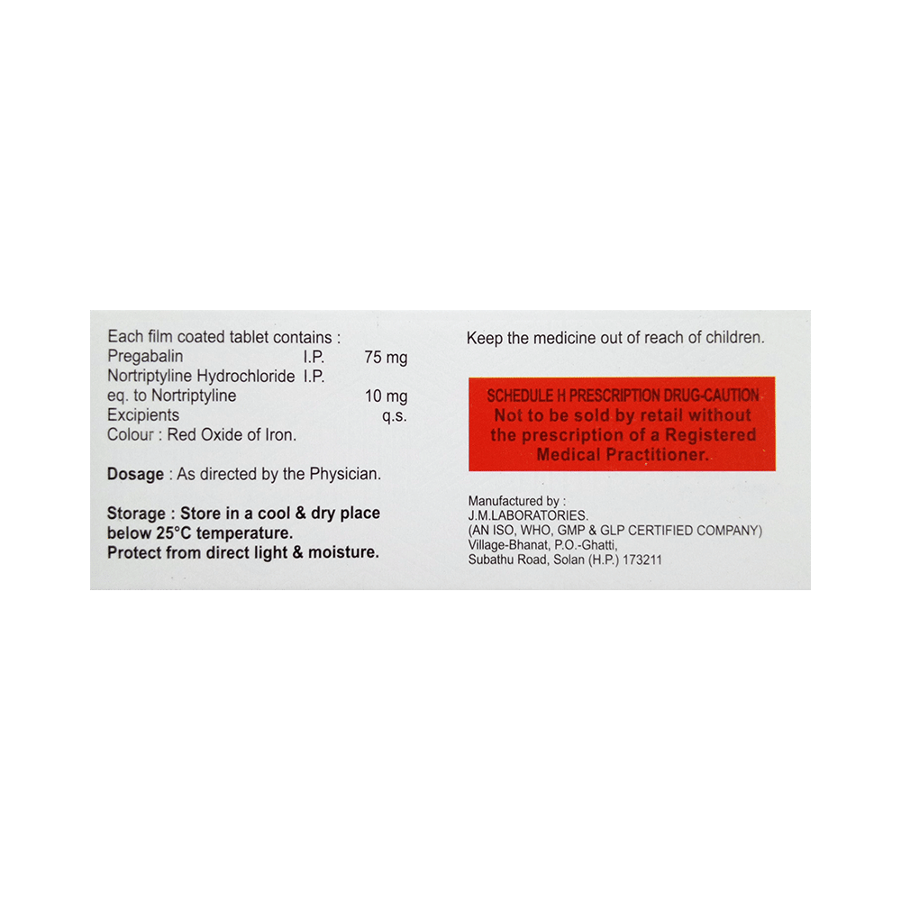 Salt Composition: Pregabalin (75mg) + Nortriptyline (10mg)