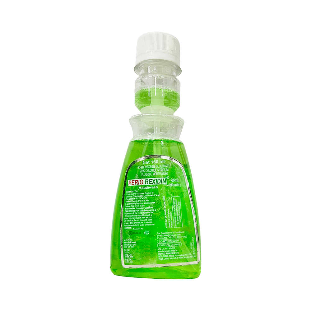 Perio Rexidin Mouth Wash Paraben Free is a combination of three medicines. It is used to treat infection of mouth or gums. This mouthwash has antimicrobial action on the infection-causing bacteria. It also prevents the teeth from getting cavities and makes them stronger. Perio Rexidin Mouth Wash Paraben Free should be used as per directed by your doctor. Do not use more than the recommended doses of this medicine. After taking a measured amount of this medicine in the mouth, rinse it thoroughly so that it reaches every corner of the mouth. Spit it out after rinsing and remember not to swallow it.This medicine is a safe medicine and usually does not cause any side effects. However, long-term use of this medicine may cause staining of the teeth.