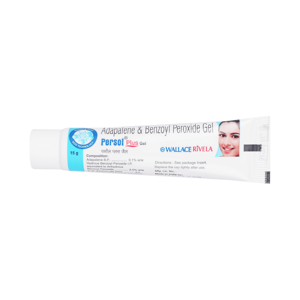 Persol PLUS Gel is a prescription medicine that has a combination of medicines that are used to treat acne. It removes the dead layer of the skin, which is present on the top, and stops the growth of bacteria. Persol PLUS Gel should be used in the dose and duration as advised by your doctor. It is for external use only. Wash your hands before using this medicine. Apply only on the affected areas of the skin. It is advised to check the label for directions before use.The most common side effects include skin irritation, itchiness, burning, and sensation at the application site. If this side effect persists for a longer duration, inform your doctor. In case by accident, this medicine goes into your eyes, ears, nose, or mouth, immediately rinse it with water.Inform your doctor if you notice darkening discoloration or a severe burning sensation on the treated skin. Inform your doctor if you have known allergies to this medicine. If you are pregnant or breastfeeding and suffering from any other condition, please inform your doctor.