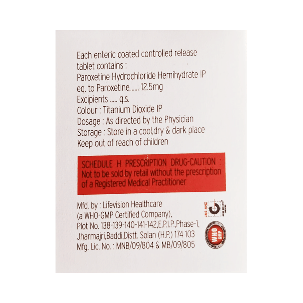 Pexoris 12.5 Tablet CR is a type of antidepressant belonging to the selective serotonin reuptake inhibitor (SSRI) group of medicines. It is widely prescribed to treat depression and anxiety-related conditions like obsessive-compulsive disorder, and panic disorder. Pexoris 12.5 Tablet CR helps many people to recover from depression by improving their mood and relieving anxiety and tension. It can be taken with or without food. The dose and how often you need it will be decided by your doctor so that you get the right amount to control your symptoms.Your doctor may start you on a lower dose and increase it gradually. Do not change the dose or stop taking it without talking to your doctor, even if you feel well. Doing so may make your condition worse or you may suffer from unpleasant withdrawal symptoms (anxiety, restlessness, palpitations, dizziness, sleep disturbances, etc).To get the most benefit, take this medicine regularly at the same time each day. Your doctor may advise you to take it in the morning if you have trouble sleeping. It may take a few weeks before you start feeling better. Let your doctor know if you do not see any improvement even after 4 weeks.Some common side effects of Pexoris 12.5 Tablet CR include nausea, fatigue, dry mouth, loss of appetite, increased sweating, dizziness, nervousness, tremors, insomnia (difficulty in sleeping), and constipation. Sexual side effects like decreased sexual drive, delayed ejaculation, and erectile dysfunction may also be seen. Let your doctor know straight away if you develop any sudden worsening of mood or any thoughts about harming yourself.Before taking this medicine, you should tell your doctor if you have epilepsy (seizure disorder or fits), diabetes, liver or kidney disease, heart problems, or glaucoma. These may affect your treatment. Pregnant or breastfeeding women should also consult their doctor before taking it. Some other medicines may affect the way it works, especially other antidepressants and medicines called MAO inhibitors. Please tell your doctor about all the medicines you are taking to make sure you are safe.
