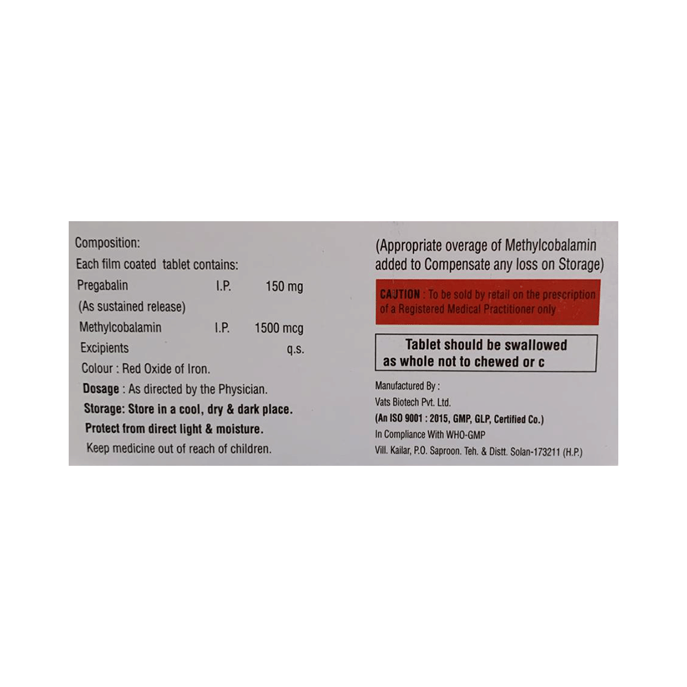 Salt Composition: Methylcobalamin (1500mcg) + Pregabalin (150mg)