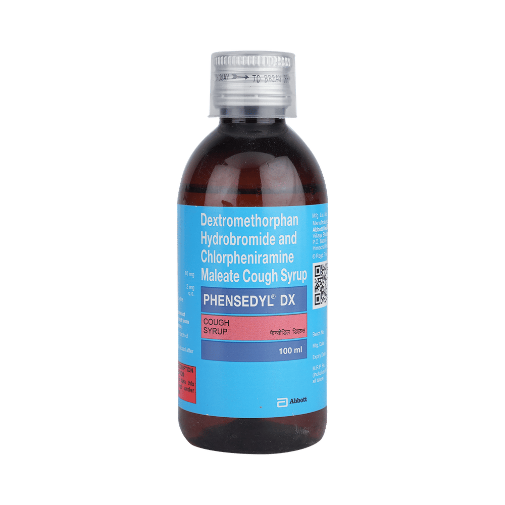 Phensedyl DX Syrup is a combination of two medicines: Chlorpheniramine Maleate and Dextromethorphan Hydrobromide, which relieves dry cough. Chlorpheniramine Maleate is an antiallergic which helps reduce cough associated with allergies by blocking the effects of a chemical messenger, histamine. Dextromethorphan Hydrobromide is a cough suppressant which relieves cough by reducing the activity of cough center in the brain.