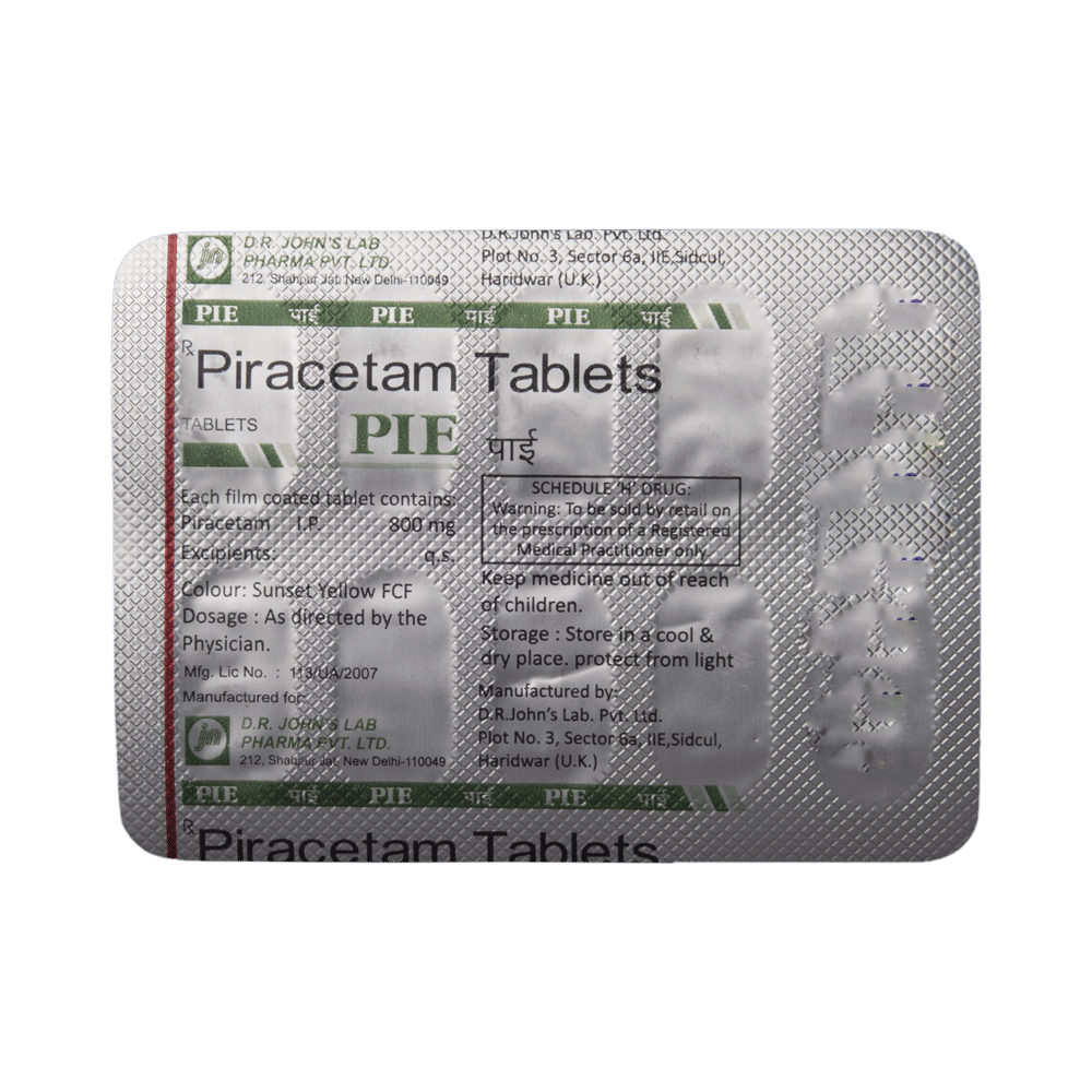 Pie 800mg Tablet is used in the treatment of memory loss in Alzheimer's disease. It can also be used to treat age-related and post-traumatic memory loss. It works by improving communication between the nerve cells and protects the brain. Pie 800mg Tablet is sometimes used to help manage sickle cell disease. It can reduce the number of painful episodes called vaso-occlusive crises by improving blood flow and preventing blood cells from sticking together.Pie 800mg Tablet should be taken by mouth with or without food. It is advisable to take this medicine at the same time each day to maintain a consistent level in the blood. Do not skip any doses and finish the full course of treatment even if you feel better. This medication mustn't be stopped suddenly, as it may result in twitching or jerking movements, and even relapse of the disease may occur.Some common side effects of this medicine include nervousness and abnormality of voluntary movements. It may also cause dizziness and sleepiness, so do not drive or do anything that requires mental focus. This medicine may cause weight gain; therefore, you should have a balanced diet and exercise regularly.This medicine can affect platelet aggregation, so inform your doctor if you have bleeding problems or if you are on medications that help make blood thin. Pregnant and breastfeeding women should consult their doctors before taking this medicine.