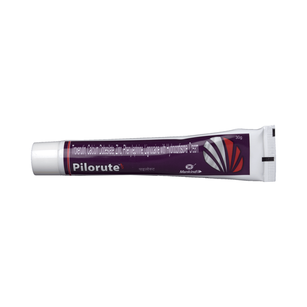 Pilorute Cream is a combination medicine used in the treatment of piles. It relieves the pain, swelling, itching, and discomfort associated with the passing of stools in people who suffer from problems in the anal area. Pilorute Cream should be used in the dose and duration as directed by your doctor. Clean and dry the affected area before applying this medicine. Make sure to wash your hands thoroughly before and after applying this medicine. Do not use your finger to apply this medicine. Do not stop using it suddenly without talking to your doctor, as it may lead to worsening of your condition.Using of this medicine may cause application site reactions (burning, irritation, itching, and redness). These are temporary and usually resolves on with time. You should consult your doctor if any of these do not resolve with time and persists for a longer duration.Avoid getting it into your eyes, nose or mouth. If accidental exposure occurs, wash your eyes with water and seek immediate medical attention. You should stop using it and inform your doctor if you notice worsening of the infection or if you develop increased redness and irritation.