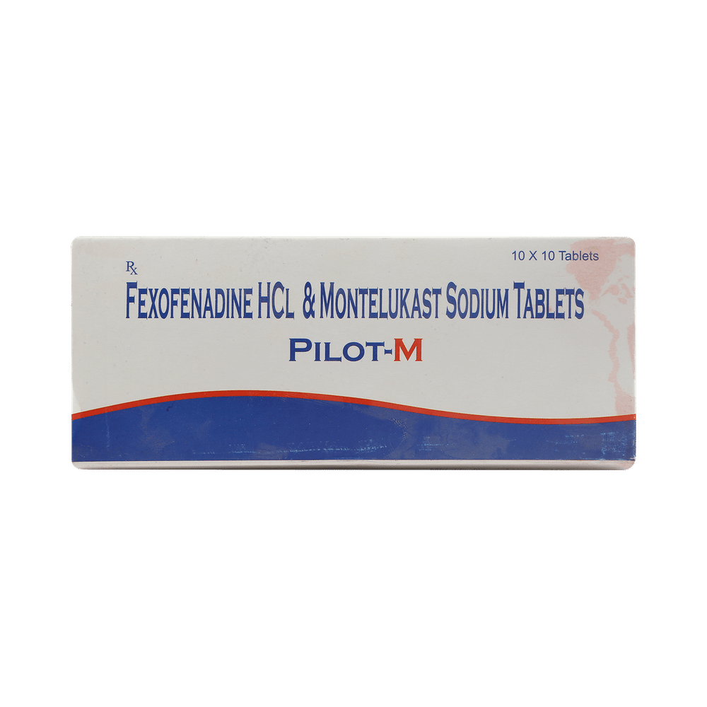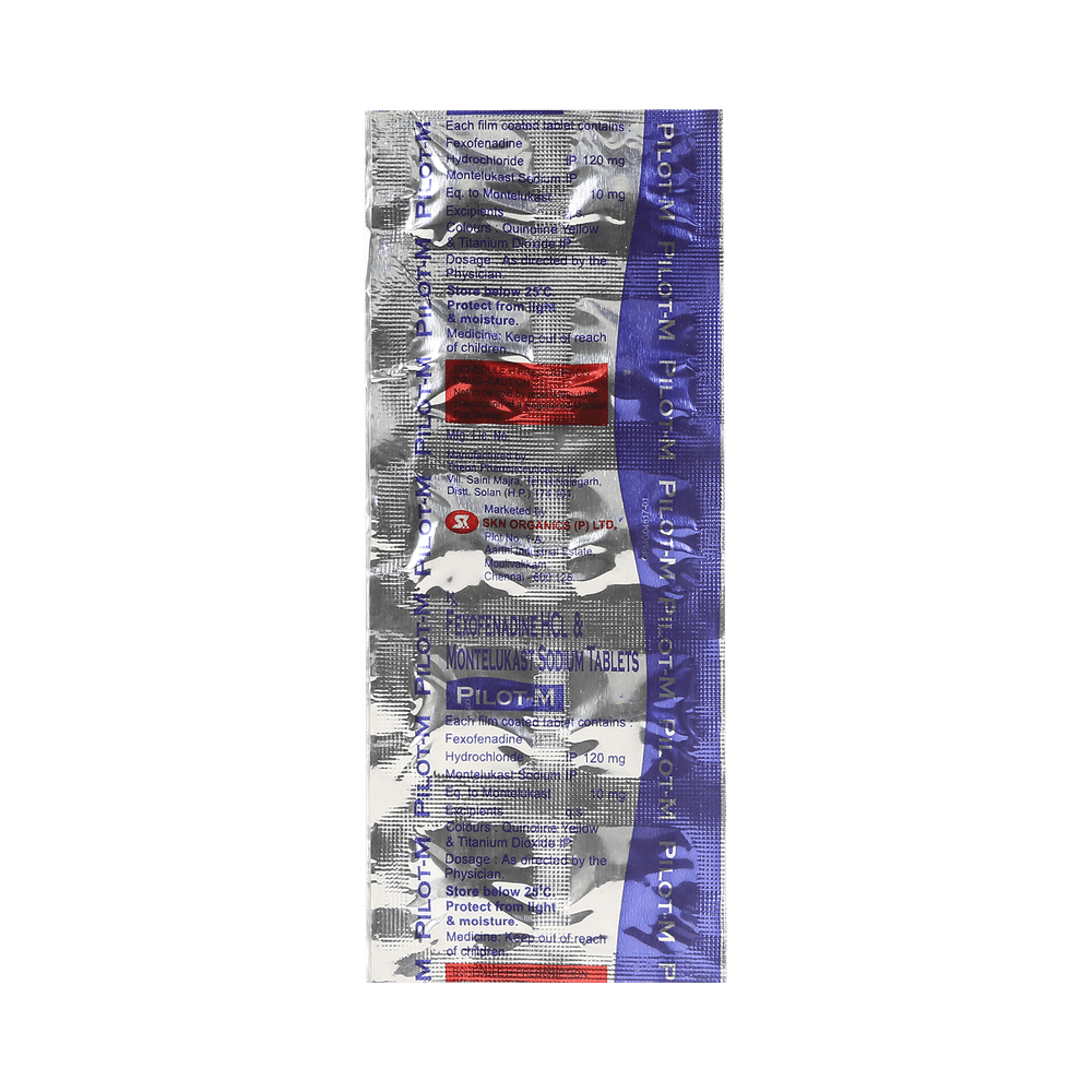 Pilot M 10mg/120mg Tablet is a combination medicine used in the treatment of allergy symptoms such as runny nose, stuffy nose, sneezing, watery eyes, and congestion or stuffiness. Pilot M 10mg/120mg Tablet is taken with or without food in a dose and duration as advised by the doctor. The dose you are given will depend on your condition and how you respond to the medicine. You should keep taking this medicine for as long as your doctor recommends. If you stop treatment too early your symptoms may come back and your condition may worsen. Let your healthcare team know about all other medications you are taking as some may affect, or be affected by this medicine.The most common side effects include nausea, diarrhea, vomiting, skin rash, flu-like symptoms, and headache. Most of these are temporary and usually resolve with time. Contact your doctor straight away if you are at all concerned about any of these side effects. This medicine may cause dizziness and sleepiness, so do not drive or do anything that requires mental focus until you know how this medicine affects you. Avoid drinking alcohol while taking this medicine as it can worsen your sleepiness.Never support self-medication or recommend your medicine to another person. It is beneficial to have plenty of fluids while taking this medication. Before you start taking this medicine it is important to inform your doctor if you are suffering from liver or kidney disease. You should also tell your doctor if you are pregnant, planning pregnancy or breastfeeding.
