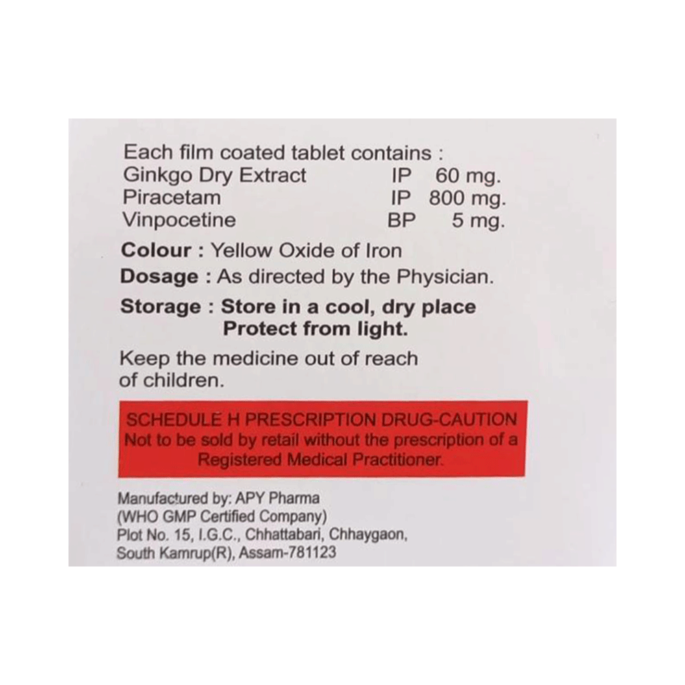 Salt Composition: Ginkgo Biloba (60mg) + Piracetam (800mg) + Vinpocetine (5mg)