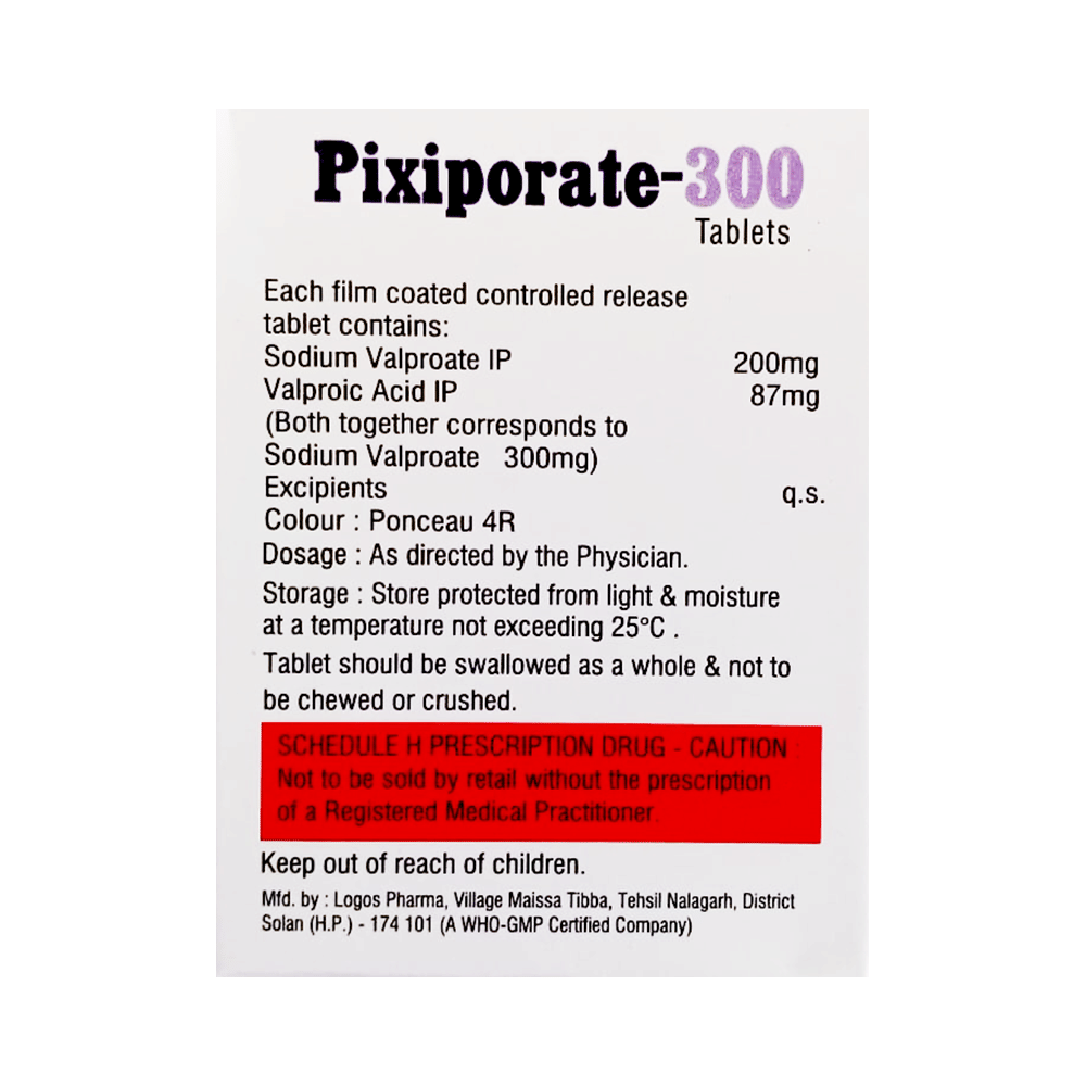 In Epilepsy/SeizuresPixiporate 300 Tablet CR is an anticonvulsant (or anti-epileptic) medicine that works by decreasing the nerve impulses which cause the seizures. By controlling the frequency of seizures, it will help you go about your daily activities with more confidence. It helps reduce symptoms such as confusion, uncontrollable jerking movements, loss of awareness, and fear or anxiety.This medicine is not associated with any physical or psychological dependence (addiction) but it should not be stopped suddenly. It must be taken regularly as prescribed to be effective. Missing doses may trigger a seizure.In Bipolar disorderPixiporate 300 Tablet CR works to restore the normal balance of nerve activity in your brain. It can help prevent extreme changes in mood and help you feel less agitated. You may experience fewer episodes of low mood. It can take several weeks for this medicine to work and you may still feel low during this time. It is likely that you will take this medicine for at least six months but possibly much longer. It needs to be taken regularly to work effectively. Do not stop taking it unless your doctor advises you to. You should continue to eat well and keep fit to reduce symptoms of bipolar disorder.show moreshow less
