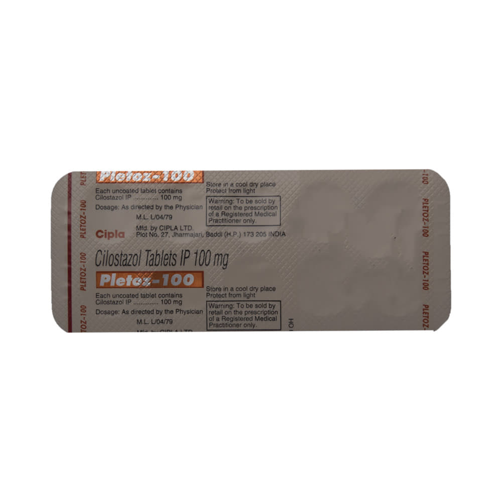 Pletoz 100 Tablet is used in the treatment of pain in legs due to insufficient blood flow (intermittent claudication).