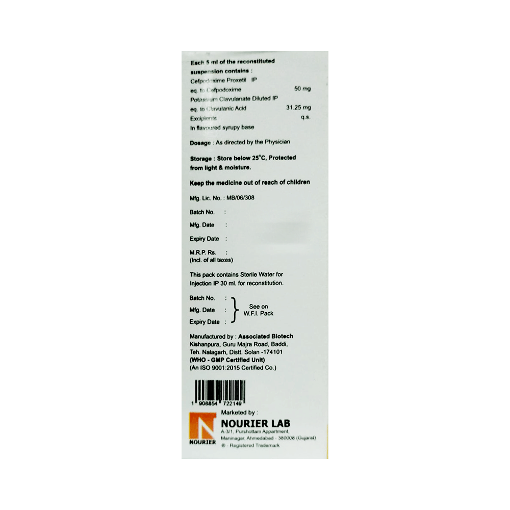 Salt Composition: Cefpodoxime Proxetil (50mg/5ml) + Clavulanic Acid (31.25mg/5ml)