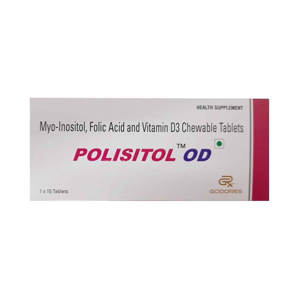 Polisitol OD Tablet is a combination of three medicines: myo-inositol, L-methyl folate, and vitamin D3. Myo-inositol helps with cellular signaling and also has antioxidant properties. L-methyl folate is the active form of folic acid, which is a type of vitamin B. It plays a vital role in the formation of red blood cells, which carry oxygen throughout the body. Vitamin D3 is a form of vitamin D. It raises vitamin D levels in your blood. This, in turn, raises calcium levels in your blood by helping you absorb more calcium from food.