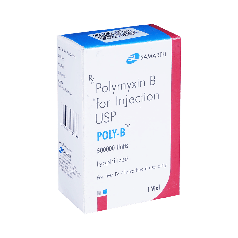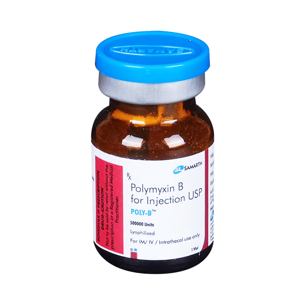 Poly-B Injection is an antibiotic that fights bacteria. It is used to treat severe bacterial infections of the body. It works by killing and stopping the growth of bacteria that cause these problems. It is commonly used to treat critically ill patients admitted to the hospital. Poly-B Injection is given under the supervision of a healthcare professional. You should get the injections at the same time each day to get the most benefit and you should keep on taking this medicine for as long as you are prescribed it, even if your symptoms quickly improve. If you stop taking it too early the infection may return or worsen.Some people may develop side effects like anaphylactic reaction, kidney damage, neurotoxicity, fever, or pain, redness, and swelling at the site of injection. These side effects are usually temporary and go away during treatment as your body adjusts to the medicine. Consult your doctor if these side effects bother you or will not go away.Before starting treatment with this medicine, you should tell your doctor if you are allergic to any antibiotic or have any liver or kidney problems. Pregnant women should consult their doctor before using it. Your doctor may get regular blood tests done to monitor kidney function.