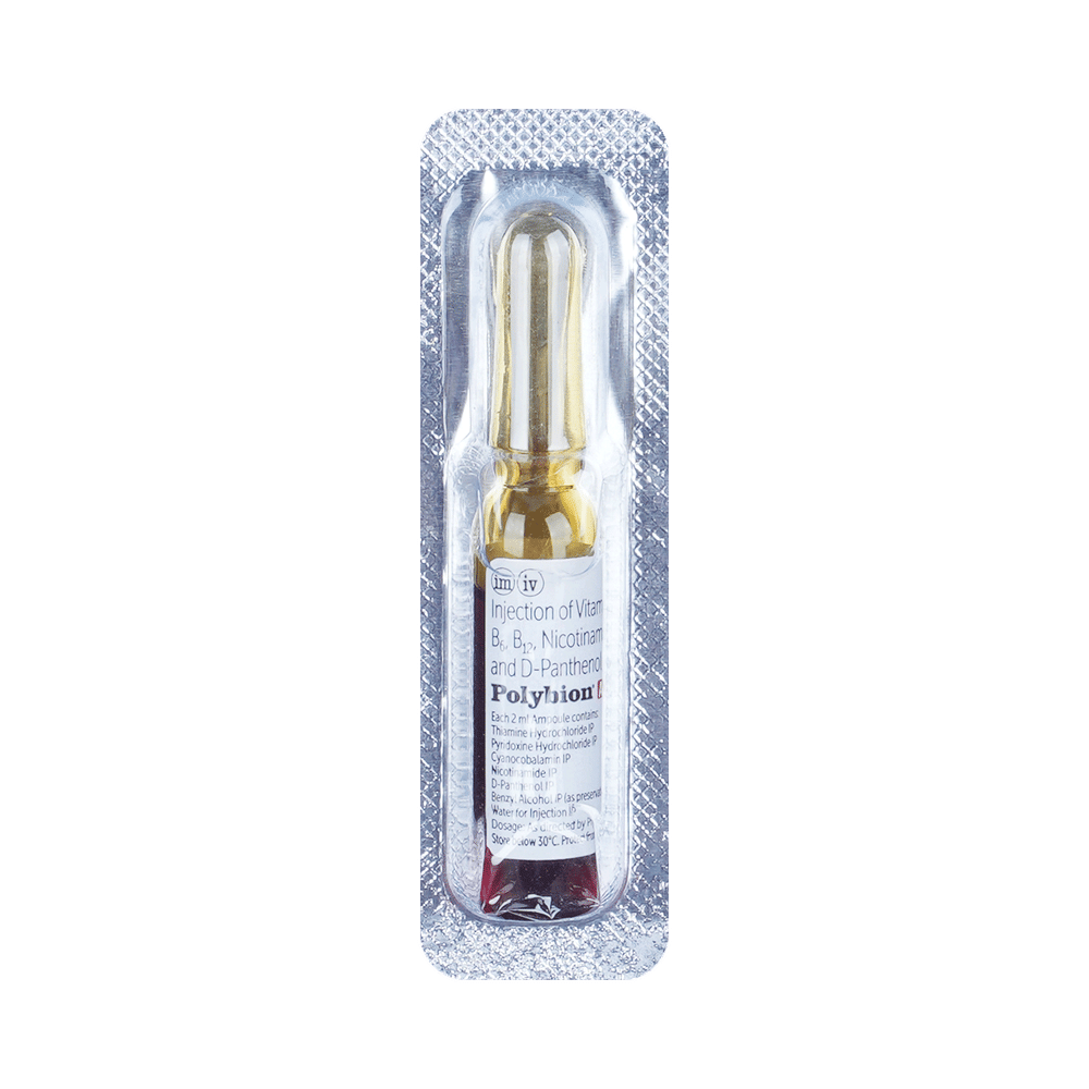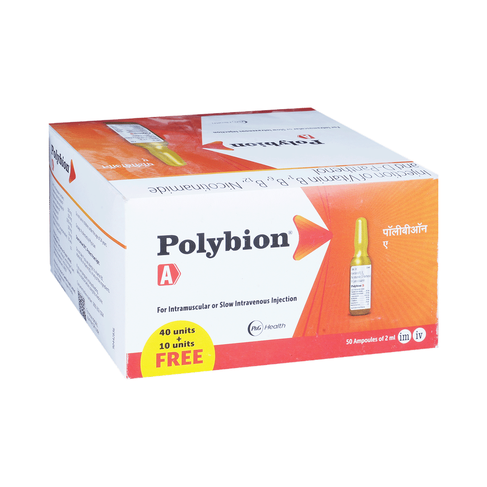 Polybion A Injection is a prescription medicine. It has a combination of vitamins that is prescribed to treat vitamin and other nutritional deficiencies. It ensures the proper growth and functioning of the body. Polybion A Injection injection is administered under the supervision of a healthcare professional. You are not advised to self administer this injection. Inform your doctor if you have any known allergy from this medication.You may experience symptoms of injection site reactions such as redness, swelling and pain. Usually they go away with time but if these symptoms persist for a longer duration, please consult your doctor. Inform your doctor if you are suffering from any disease or are taking any medicines.