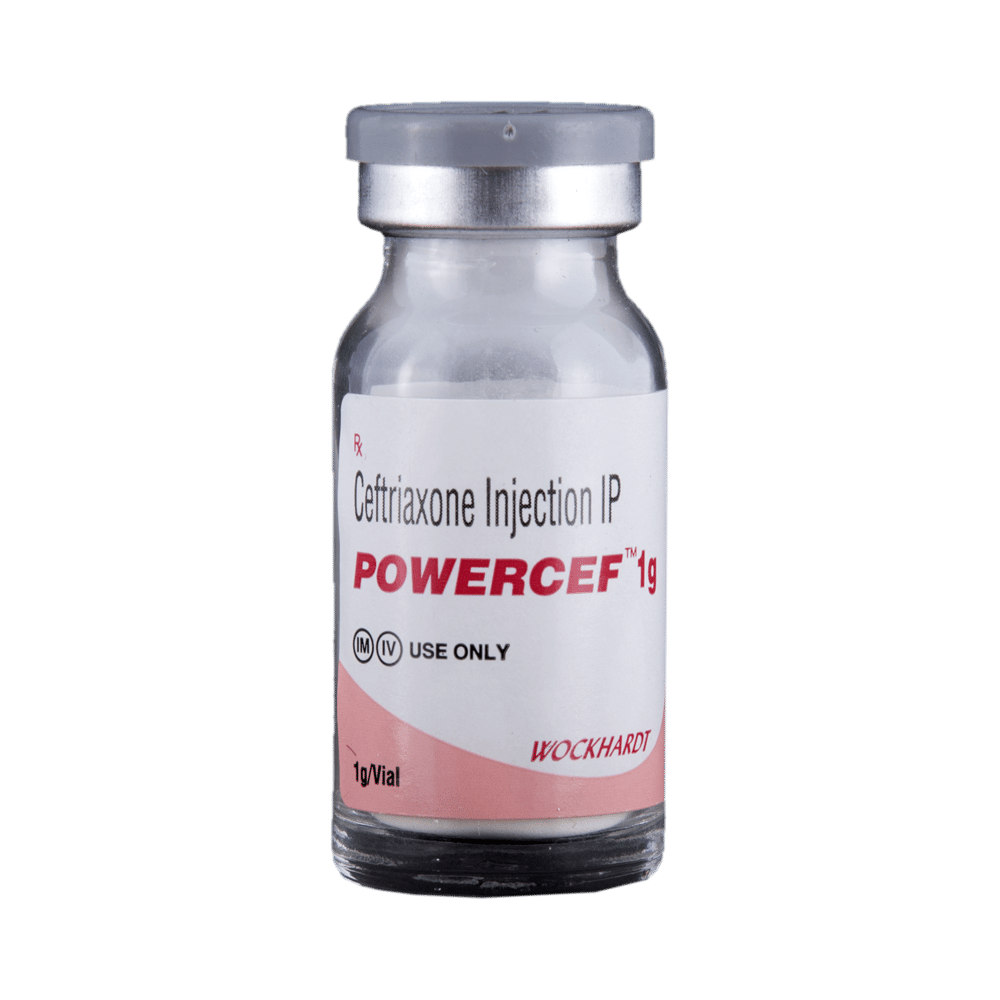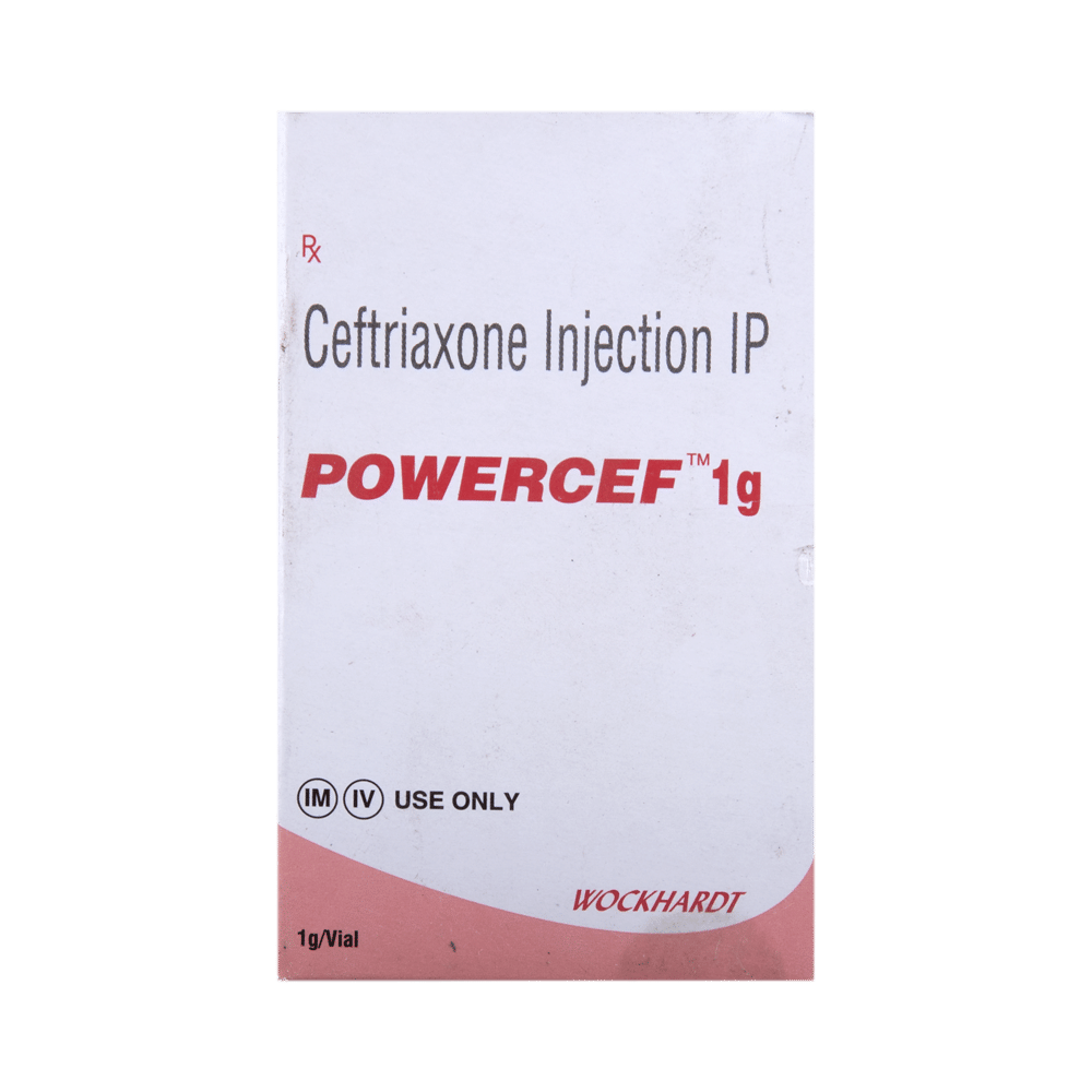 Powercef 1g Injection is a medicine used to treat bacterial infections in your body. It is effective in infections of the brain (e.g., meningitis), lungs (e.g., pneumonia), ear, urinary tract, skin and soft tissues, bones and joints, blood, and heart. Powercef 1g Injection may also be used to prevent infections during surgery. It is given as a drip (intravenous infusion) or as an injection directly into a vein or a muscle under the supervision of a doctor. Your doctor will decide the correct dose for you. This medicine will be given to you regularly at evenly spaced intervals as per the schedule prescribed by your doctor. Do not skip any doses and finish the full course of treatment even if you feel better. Stopping the medicine too early may lead to the return or worsening of the infection.The most common side effects of Powercef 1g Injection include diarrhea, rash, changes in liver function tests, and blood cell counts (such as high eosinophil count, decreased white blood cells, and low blood platelets). Some people may develop temporary redness or pain at the site of injection. These side effects are usually mild, but let your doctor know if they bother you or do not go away.Before taking Powercef 1g Injection, you should let your doctor know if you are allergic to any antibiotics or have any kidney or liver problems. You should also let your doctor know about all other medicines you are taking, as they may affect, or be affected by, this medicine.