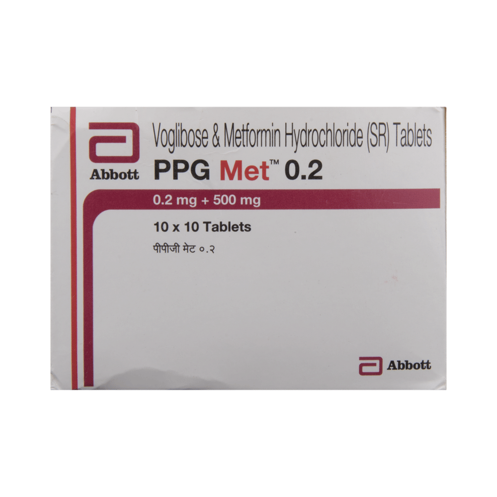 PPG Met 0.2 Tablet SR belongs to a category of medicines known as anti-diabetic drugs. It is a combination of medicines used to treat type 2 diabetes mellitus in adults. It helps control blood sugar levels in people with diabetes. PPG Met 0.2 Tablet SR should be taken with food. Take it regularly at the same time each day to get the most benefit. Your doctor will decide what dose is best for you and this may change from time to time according to how it is working according to your blood sugar levels.Keep taking this medicine, even if you feel well or your blood sugar levels are controlled. If you stop it without consulting your doctor, your blood sugar levels could rise and put you at risk of kidney damage, blindness, nerve problems and loss of limbs. Remember that it is only part of a treatment program that should also include a healthy diet, regular exercise, and weight reduction as advised by your doctor. Your lifestyle plays a big part in controlling diabetes.This medicine may cause side effects like nausea, taste change, loss of appetite, flatulence, stomach pain, diarrhea, and skin rash. However, these are temporary and usually subside on their own. If these do not resolve or worry you, please consult your doctor. Your doctor might suggest ways of dealing with your side effects or treating them if they are bothersome.You should not take it if you have type 1 diabetes mellitus, if you have diabetic ketoacidosis (high levels of acid in your blood), or if you have severe kidney or liver disease. Before taking this medicine, tell your doctor if you have ever had heart disease. It may not be suitable. Pregnant or breastfeeding women should also consult their doctor before taking it. Your blood sugar levels should be checked regularly and your doctor may also advise blood tests to monitor your blood cell counts and liver function.