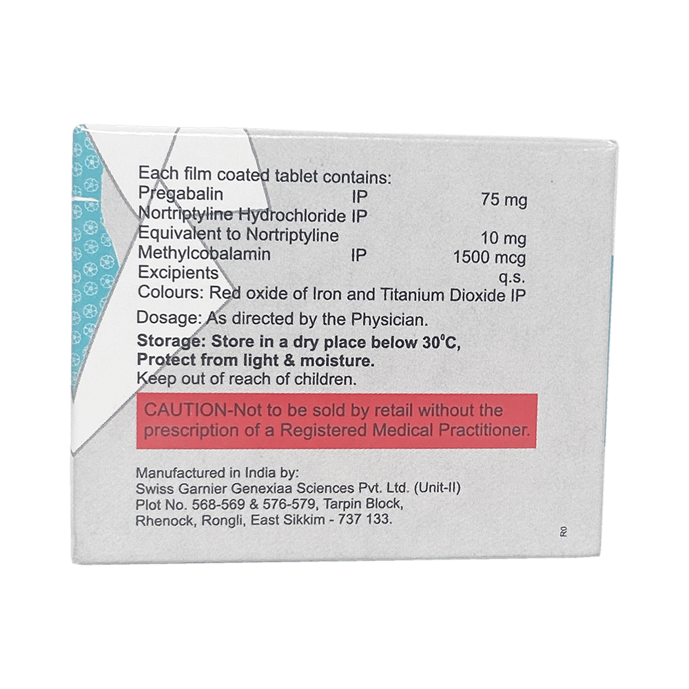 Salt Composition: Pregabalin (75mg) + Nortriptyline (10mg) + Methylcobalamin (1500mcg)