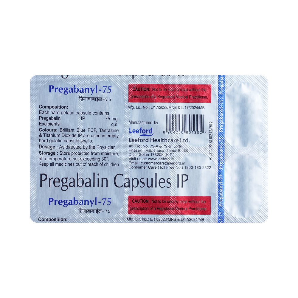 pregabaNYL 75 Capsule is a medicine used to relieve pain caused by nerve damage (neuropathic pain) due to diabetes, shingles (herpes zoster infection), spinal cord injury, or other conditions. It is also used to treat widespread muscle pain and stiffness in people with fibromyalgia. pregabaNYL 75 Capsule belongs to the anti-epileptic group of medicines and can also be used to treat certain types of seizures (fits) in combination with other medicines. Additionally, it may also be prescribed to treat the symptoms of anxiety disorder if other medicines are not suitable.You can take pregabaNYL 75 Capsule with or without food, but it is important to take this medicine at the same time each day to get the most benefit. The exact dose and duration of treatment will depend on your condition and how you respond to it. Your doctor will probably start this medicine at a low dose and increase it gradually. It may take a few weeks for the medicine to work properly. Follow your doctor’s instructions and continue taking it regularly until your doctor advises you to stop. Do not miss any dose, otherwise, your condition may worsen.The side effects of this medicine are usually mild and go away by themselves. The most common ones are feeling sleepy or dizzy, dryness in the mouth, blurred vision, weight gain, edema (swelling over the whole body), and difficulty in concentrating. Most side effects are not serious and do not need medical attention. Talk to your doctor about potential side effects and ways in which you might prevent or cope with them.Before taking the medicine you should tell your doctor if you are pregnant, breastfeeding, or planning to become pregnant. Be careful while driving as sleepiness, dizziness, and blurring of vision may be seen as side effects. You should avoid drinking alcohol along with this medicine as it may lead to excessive sleepiness and dizziness.