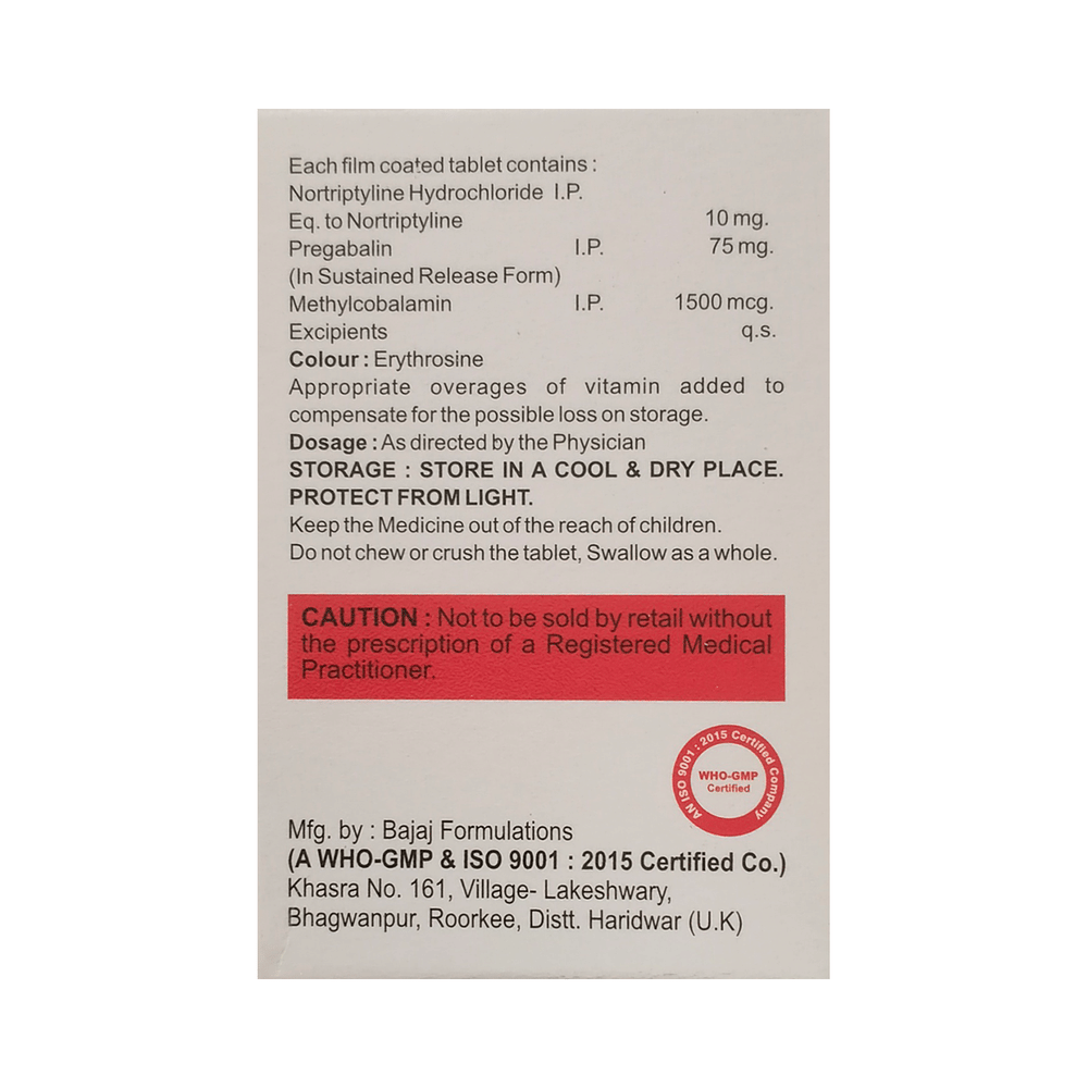 Salt Composition: Pregabalin (75mg) + Nortriptyline (10mg) + Methylcobalamin (1500mcg)