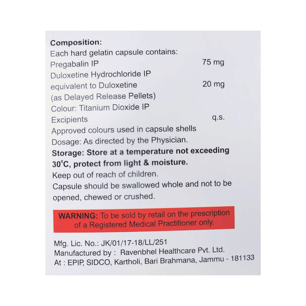 Salt Composition: Pregabalin (75mg) + Duloxetine (20mg)