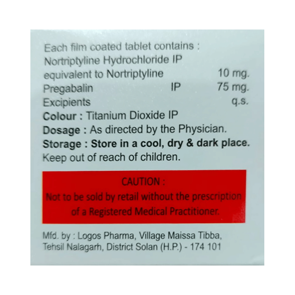 Salt Composition: Pregabalin (75mg) + Nortriptyline (10mg)