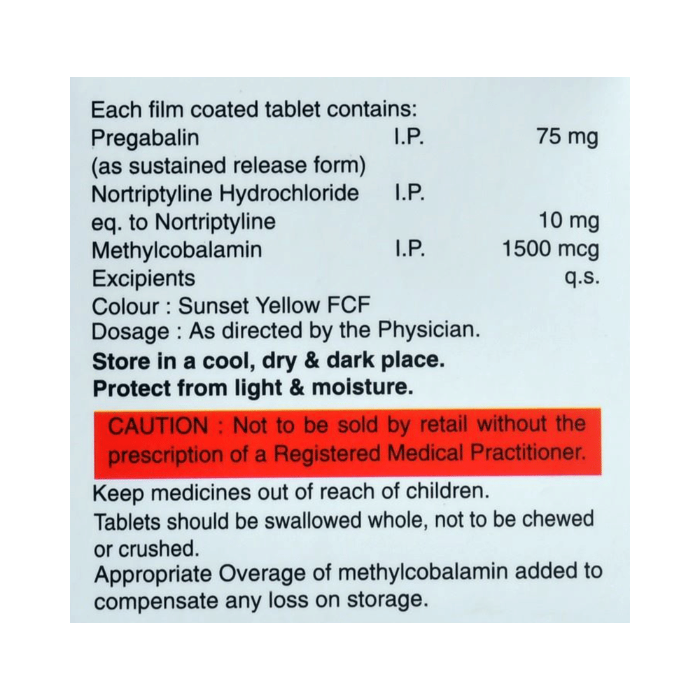 Salt Composition: Pregabalin (75mg) + Nortriptyline (10mg) + Methylcobalamin (1500mcg)