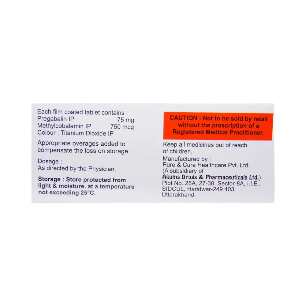 Salt Composition: Methylcobalamin (750mcg) + Pregabalin (75mg)