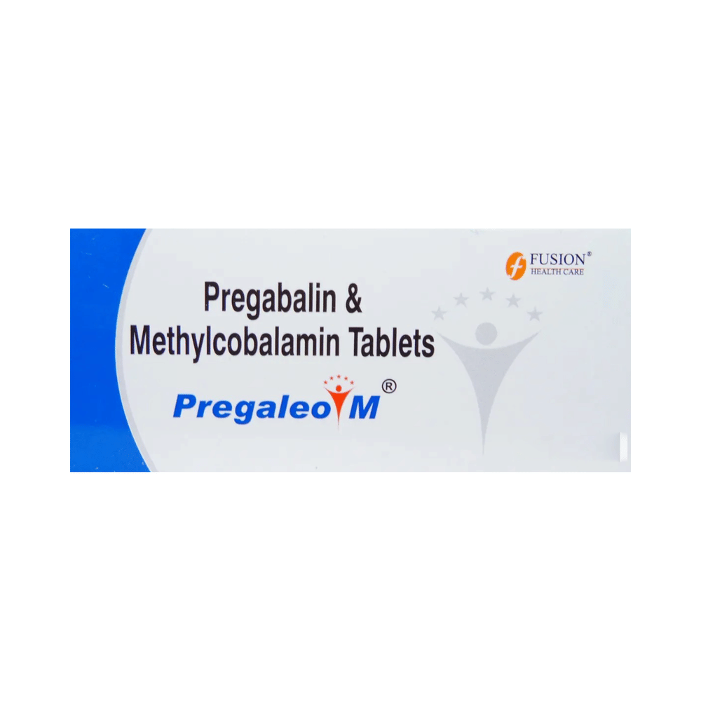 Pregaleo M Tablet is a prescription medicine used for the treatment of neuropathic pain. It decreases pain by modulating the calcium channel activity of the nerve cells. This medicine also protects nerve fibers and heals damaged nerve cells. Pregaleo M Tablet may be taken with or without food, preferably at bedtime. It is advised to take it at the same time each day as this helps to maintain a consistent level of medicine in the body. Take this medicine in the dose and duration advised by your doctor. If you miss a dose of this medicine, take it as soon as you remember. Finish the full course of treatment even if you feel better. This medication must not be stopped suddenly without talking to the doctor.Some common side effects of this medicine include nausea, vomiting, diarrhea, constipation, blurred vision, dizziness, and sleepiness. Do not drive or do anything that requires mental focus until you know how this medicine affects you. The side effects are mild and usually improve with time. It may also cause weight gain in some people. Exercise regularly and have a balanced diet to keep your weight in check. Inform your doctor if you develop any unusual changes in mood or behavior, new or worsening depression, or suicidal thoughts.Your doctor should also know about all other medicines you are taking, as many of these may make this medicine less effective or change the way it works. Inform your doctor if you are pregnant, planning pregnancy, or breastfeeding to make sure it is safe for you and the developing baby.
