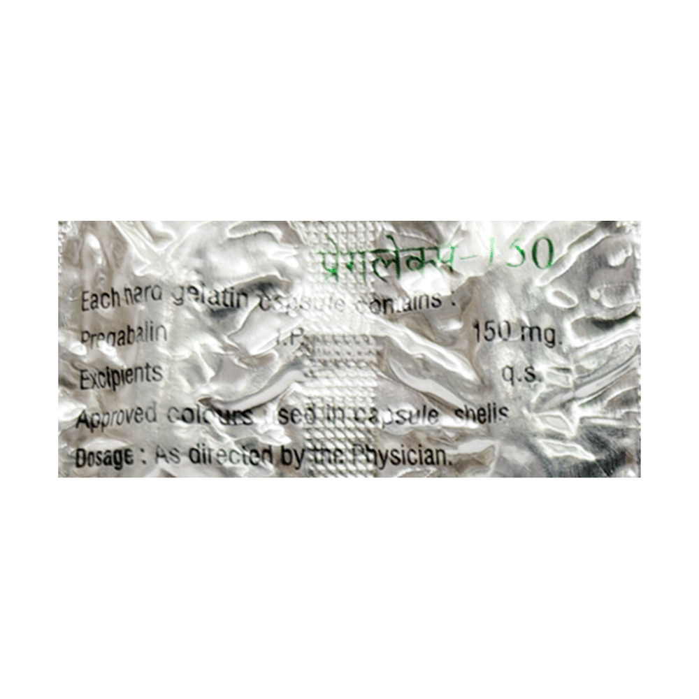Pregalex 150 Capsule is a medicine used to relieve pain caused by nerve damage (neuropathic pain) due to diabetes, shingles (herpes zoster infection), spinal cord injury, or other conditions. It is also used to treat widespread muscle pain and stiffness in people with fibromyalgia. Pregalex 150 Capsule belongs to the anti-epileptic group of medicines and can also be used to treat certain types of seizures (fits) in combination with other medicines. Additionally, it may also be prescribed to treat the symptoms of anxiety disorder if other medicines are not suitable.You can take Pregalex 150 Capsule with or without food, but it is important to take this medicine at the same time each day to get the most benefit. The exact dose and duration of treatment will depend on your condition and how you respond to it. Your doctor will probably start this medicine at a low dose and increase it gradually. It may take a few weeks for the medicine to work properly. Follow your doctor’s instructions and continue taking it regularly until your doctor advises you to stop. Do not miss any dose, otherwise, your condition may worsen.The side effects of this medicine are usually mild and go away by themselves. The most common ones are feeling sleepy or dizzy, dryness in the mouth, blurred vision, weight gain, edema (swelling over the whole body), and difficulty in concentrating. Most side effects are not serious and do not need medical attention. Talk to your doctor about potential side effects and ways in which you might prevent or cope with them.Before taking the medicine you should tell your doctor if you are pregnant, breastfeeding, or planning to become pregnant. Be careful while driving as sleepiness, dizziness, and blurring of vision may be seen as side effects. You should avoid drinking alcohol along with this medicine as it may lead to excessive sleepiness and dizziness.