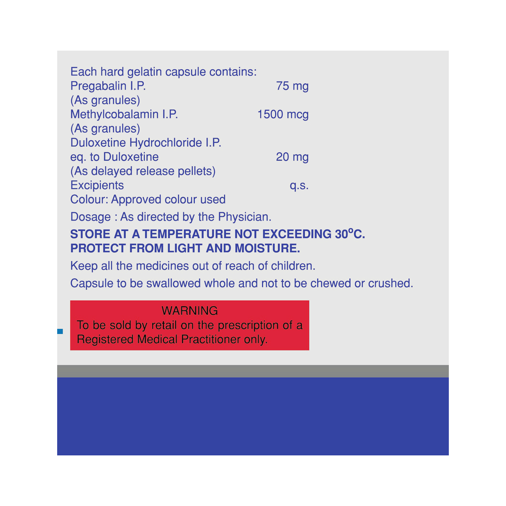 Salt Composition: Pregabalin (75mg) + Methylcobalamin (1500mcg) + Duloxetine (20mg)