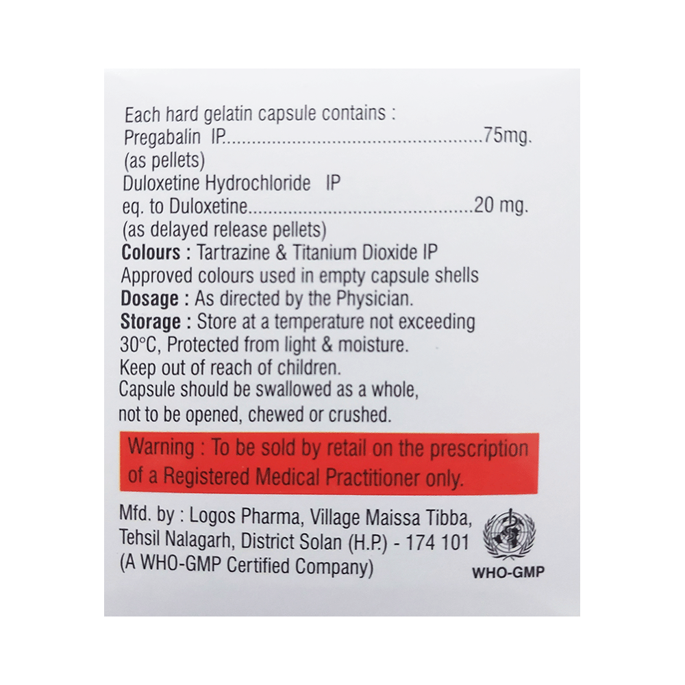 Salt Composition: Pregabalin (75mg) + Duloxetine (20mg)