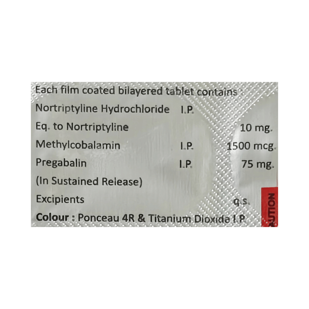 Salt Composition: Pregabalin (75mg) + Nortriptyline (10mg) + Methylcobalamin (1500mcg)