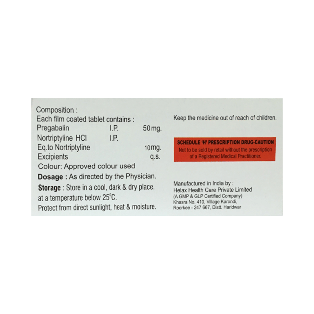 Salt Composition: Pregabalin (50mg) + Nortriptyline (10mg)